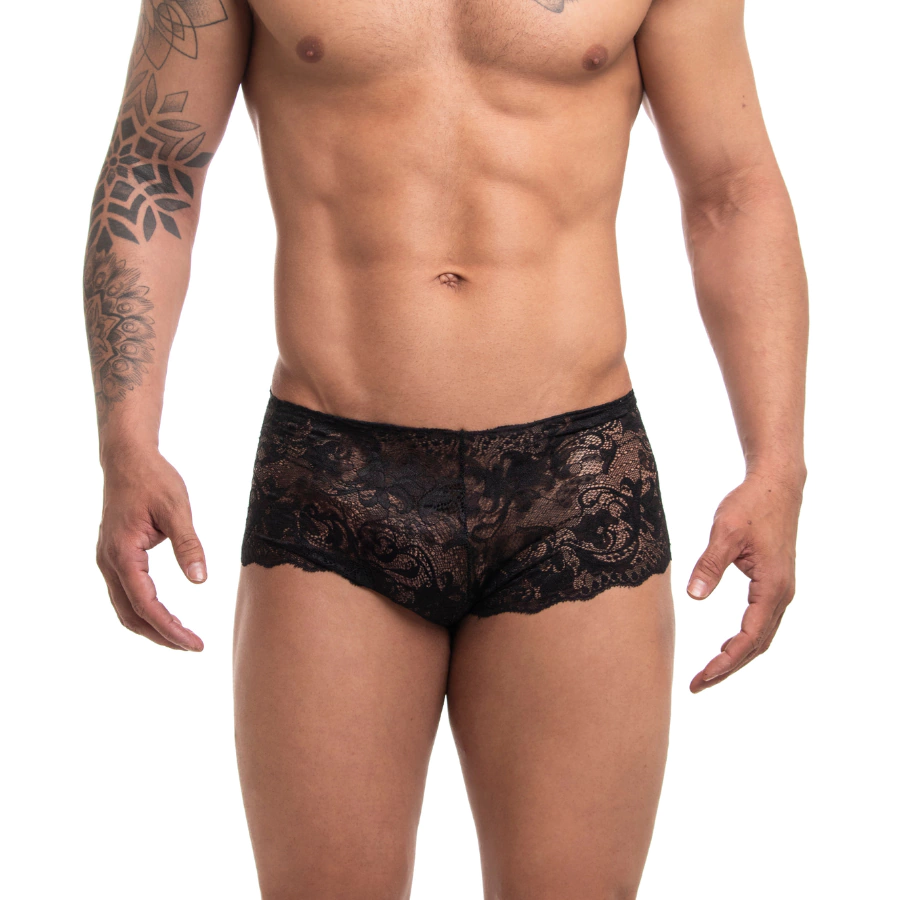 Feito de renda fina e transparente, este short tem um corte estilo um short que acomoda bem no corpo.