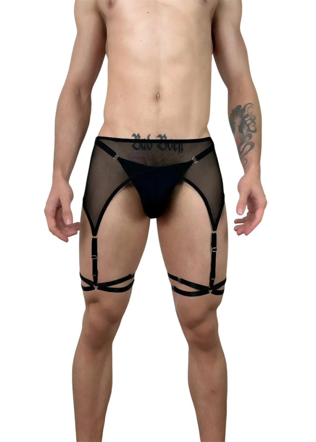 Feita em Tule tecido levemnte transparente, sedutor e extremamente confortavel. Acompanha duas cintas em uma e feichos para encaixe.
