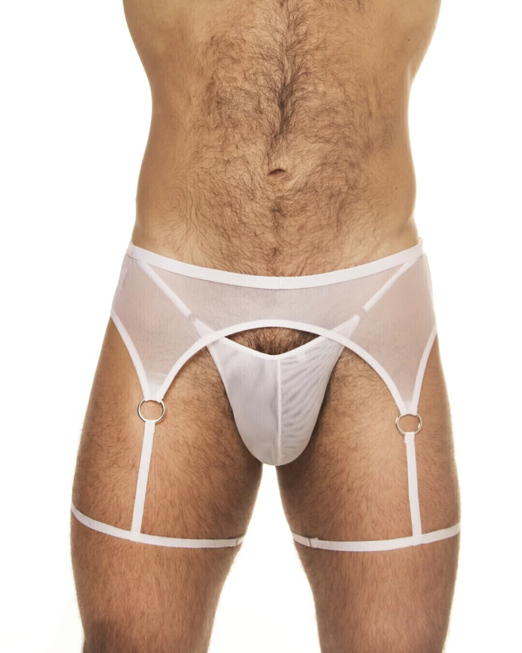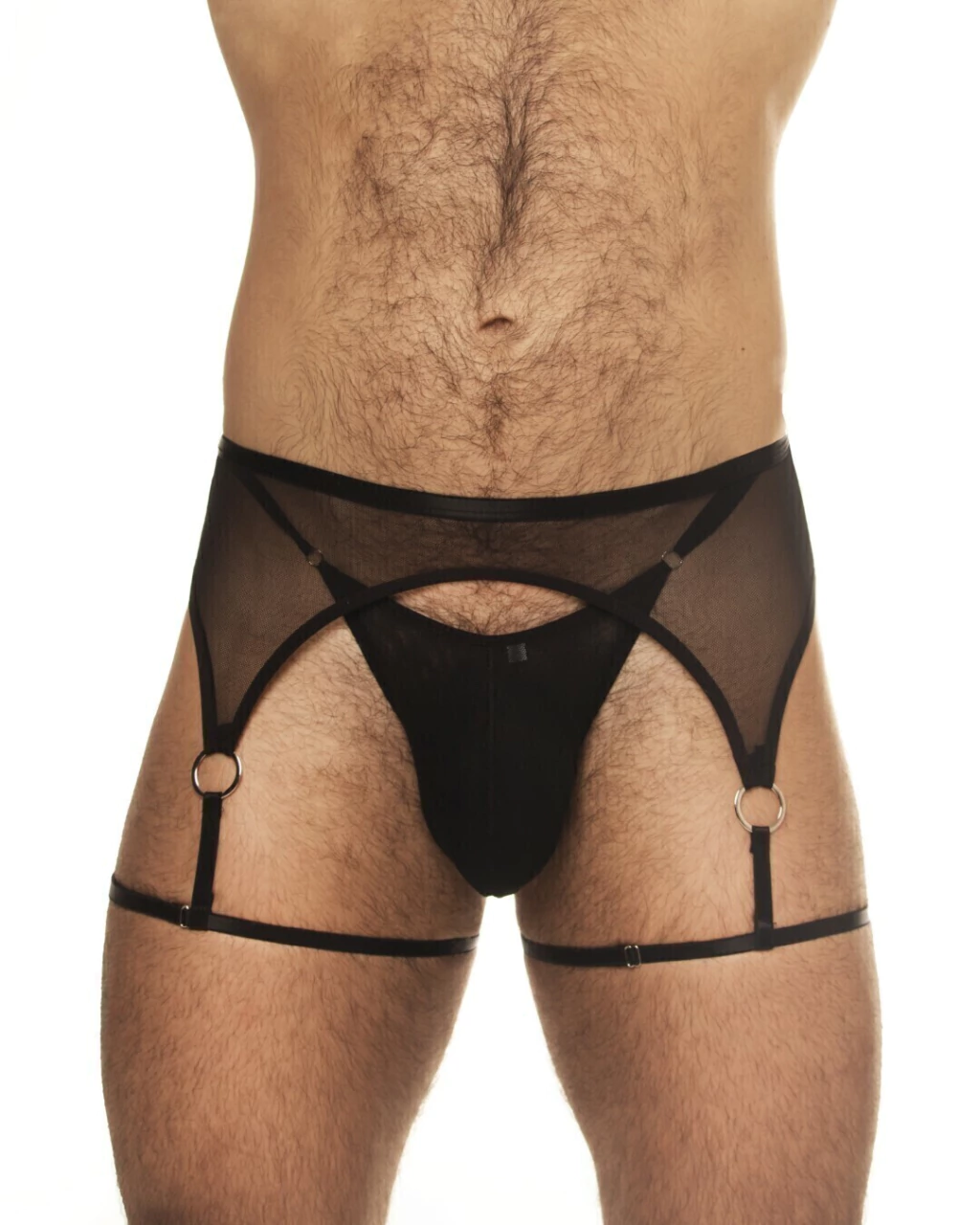 A Ricok Couture é conhecida por suas peças íntimas de alta qualidade e design exclusivo, e essa cinta liga masculina de tule não é exceção.