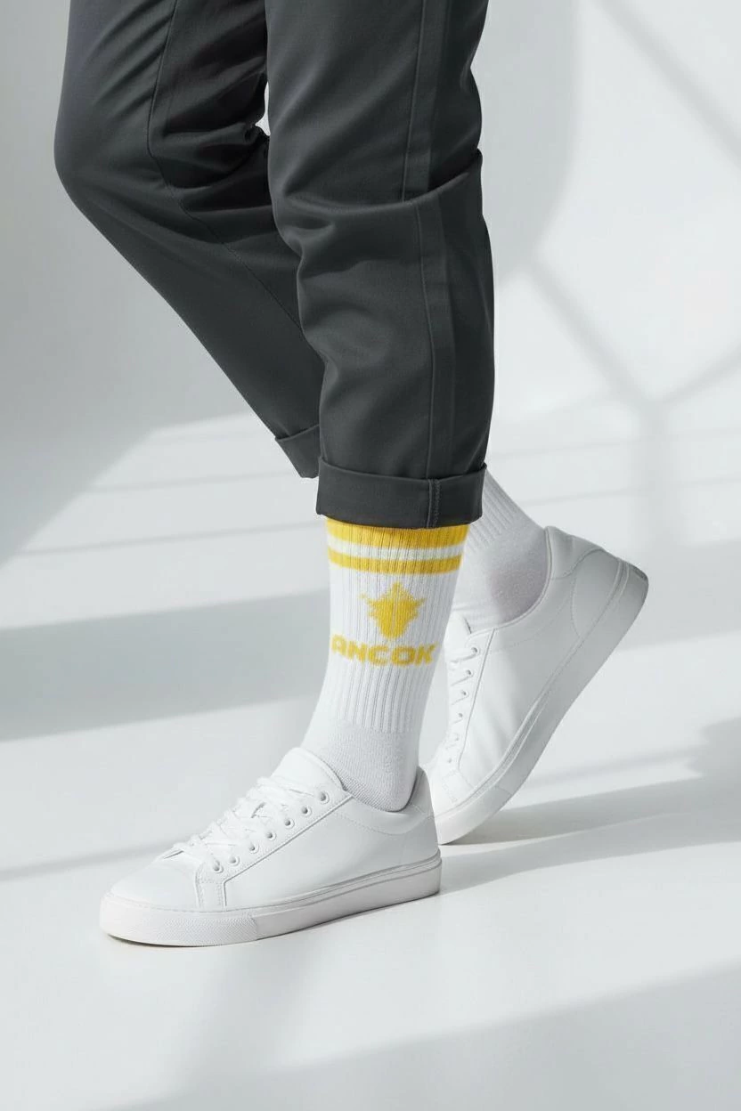 Duas listras icônicas e o logo RICOK em jacquard criam um ponto focal que atrai o olhar na hora (contraste alto = atenção imediata). O cano médio abraça sem apertar, não escorrega e a malha macia entrega aquele “efeito primeiro uso”: calçou, gostou. Do treino ao street, é o detalhe que transforma o básico em protagonista.