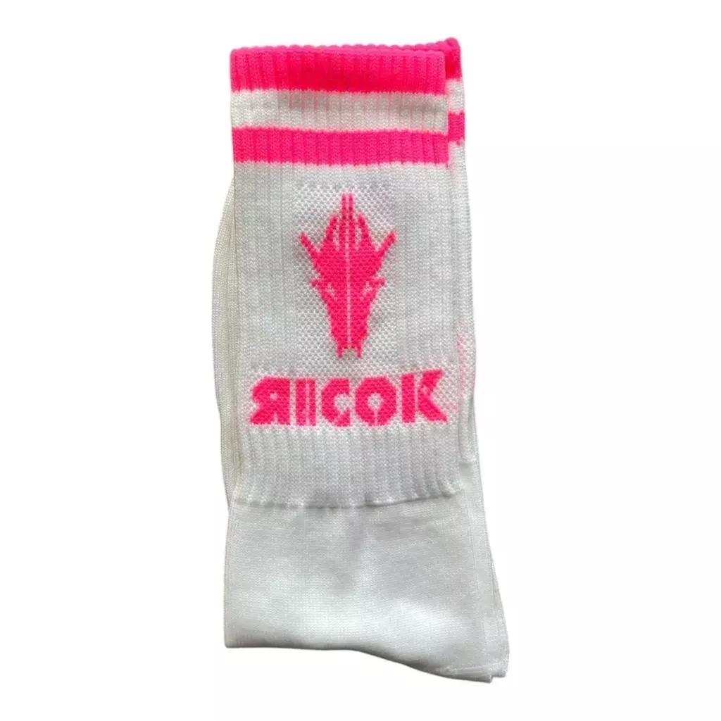 Modelo: cano médio (crew) com duas listras e logo RICOK em jacquard